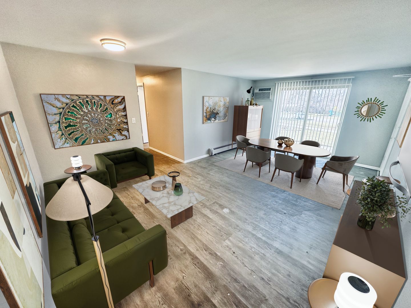 Discover over 775 square feet of elegantly designed living space, featuring luxury vinyl plank flooring or new carpeting, fresh paint, and contemporary appliances. Our residents enjoy large scenic courtyards, on-site laundry facilities, air conditioning, and 24-hour maintenance services, ensuring a worry-free living experience.